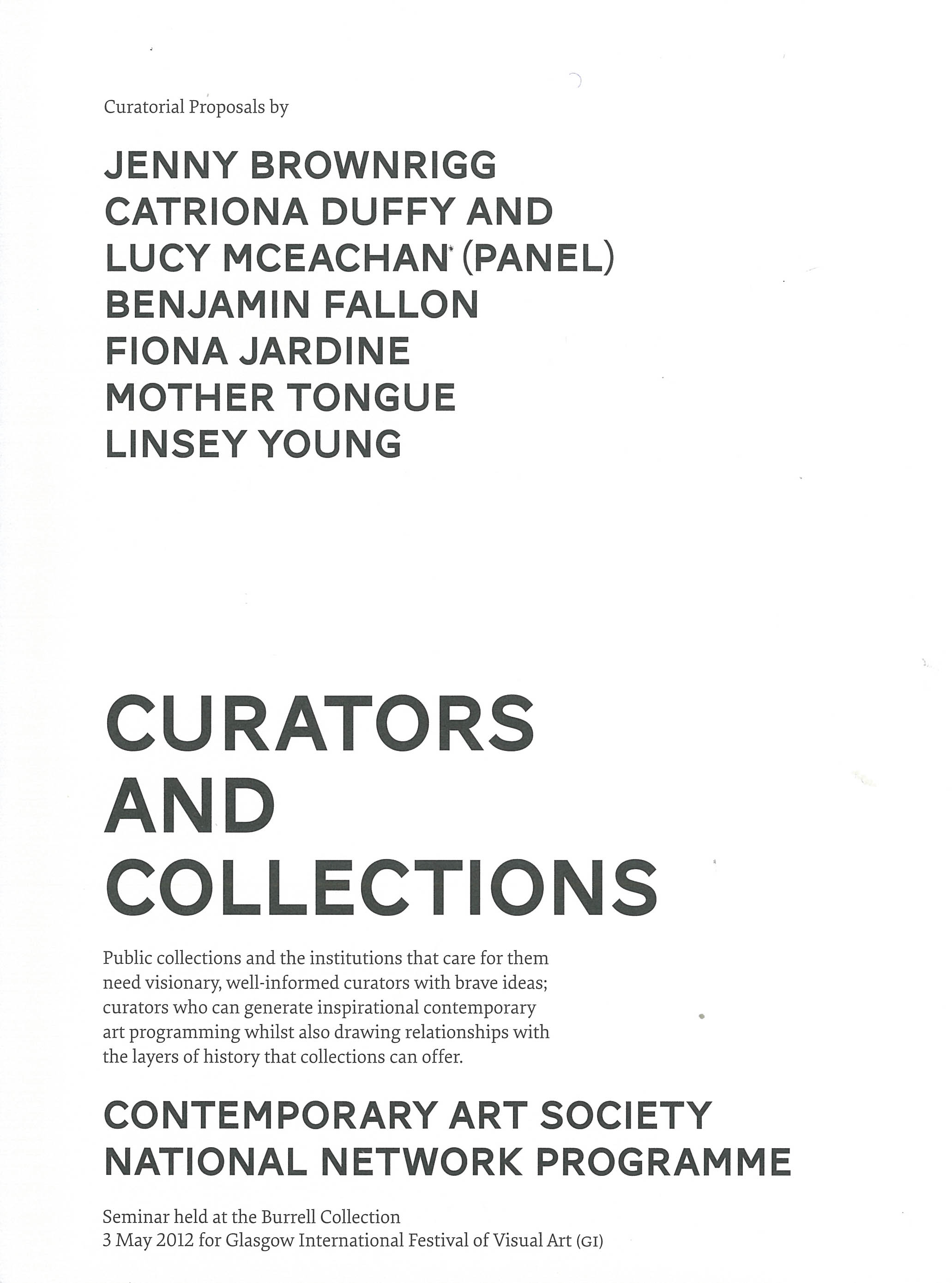 download ‘Holding Yellow’, a curatorial proposal for the Burrell Collection by Jenny Brownrigg, as part of ‘Curators and Collections’ Seminar and publication May 2012 by Contemporary Art Society for Glasgow International Festival of Visual Art.