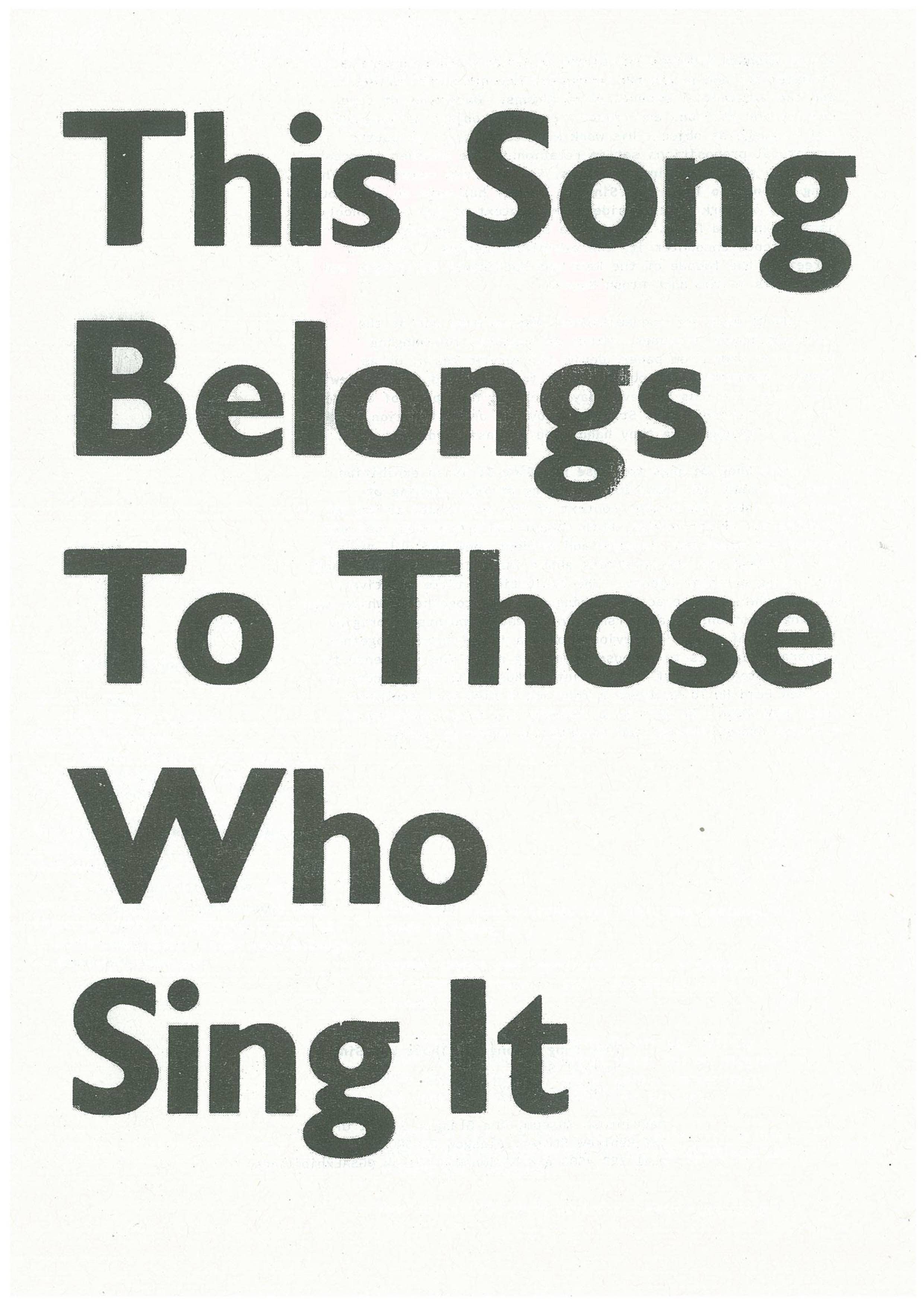 Text for: ‘This Song Belongs to Those who Sing It’, Michael Stumpf 4 April – 4 May 2014.