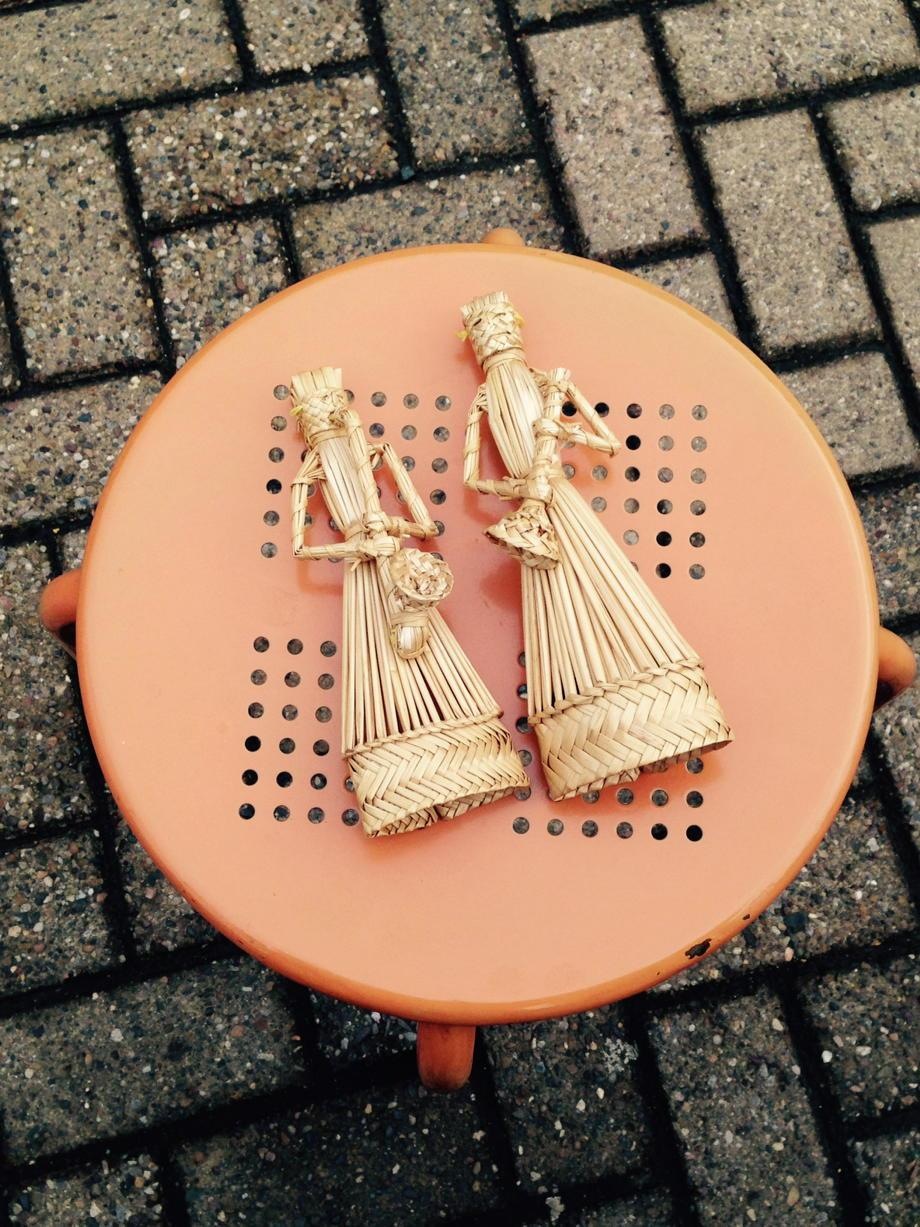 I wonder can I make her warm, as I have the window open. I can’t ask her, as speaking doesn’t feel right, so instead I keep drawing. The presence of the sitter, outside the door, is definitely one I am aware of too. It does feel like a two person piece, of the performer and the waiting person; or three if you count myself. I think about the difference between sitting with Sogol in a gallery, or sitting with her on this Home Visit. The Home Visit gives the homeowner more control in a sense to decide how to respond. I feel companionship and think of women and craft. I have two corn dollies, picked up from a Cornish charity shop, that are sitting on a shelf in the lounge. The way Sogol’s hair is plaited, their strange faces or masks and the act of women twisting the corn to make them, makes me think they are the right votives, even guardians for this home visit. I want to give my visitors something from the house.