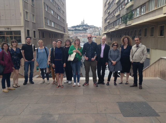 Our delegation of thirteen [1], had been invited by the organising committee of Marseille Expo to attend Printemps de l’Art Contemporain (PAC) and meet a network of arts organisations who are members of Marseille Expo.  In its eighth edition, PAC is a May festival which brings together a wide range of galleries, museums, production facilities and studios. This visit for the Scottish delegation has been a scoping one, providing the opportunity to meet with galleries, artists and arts organisations with the view to developing ideas for future projects, exchanges, exhibitions or residencies with Marseille. Future links or opportunities are by no means limited to the group on this curatorial trip. This link between Scotland and Marseille builds on established links such as the Triangle France exchange, which has been running since 2012 between Glasgow Sculpture Studios and Triangle France with previous Marseille and Glasgow-based artists including, from Marseille – Amandine Guruceaga who we met at Tank Art Space a gallery space which is part of her home, and Thomas Teurlai, whose installation Bullroarer we saw at Musée Catini through Les Ateliers d’Artistes de la Ville de Marseille programme. Marseille’s Sextant Et Plus is another organisation, ( Director Veronique Collard-Bovy), which has strong links with Scotland and in particular Glasgow, most recently in 2014 working with Graham Fagen and Graham Eatough on their project ‘In Camera‘. Wasps’ project The Poundshop, selling the work of Scottish-based and Marseille-based designers, ran at Southblock, Glasgow, during Merchant City Festival 2016.