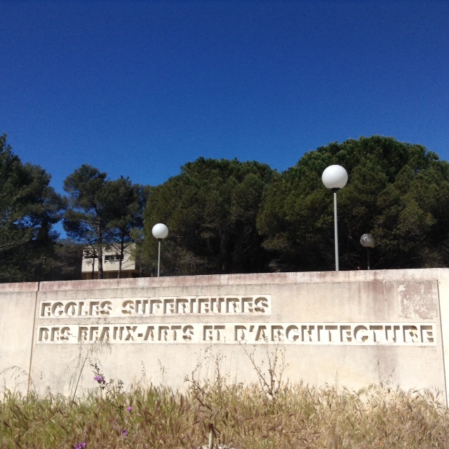 The next day, following an impromptu drive-by of Cite Radieuse, our first visit was to the art school, L’Ecole Supérieure d’Art et de Design Marseille-Méditerranée which is located in a spectacular setting in the hills behind Marseille. The art school has approximately 400 students, with an impressive ratio of one tutor to ten students. The architecture is intriguing, with studio units and facilities built in a stepped formation up the hill. There were very good facilities, in particular for printmaking, and a new film studio called Le Plateau recently opened, with state of the art equipment for filming and sound. The art school was, through their research wing, in the process of setting up a programme of residencies for national artists to work with research staff and students.