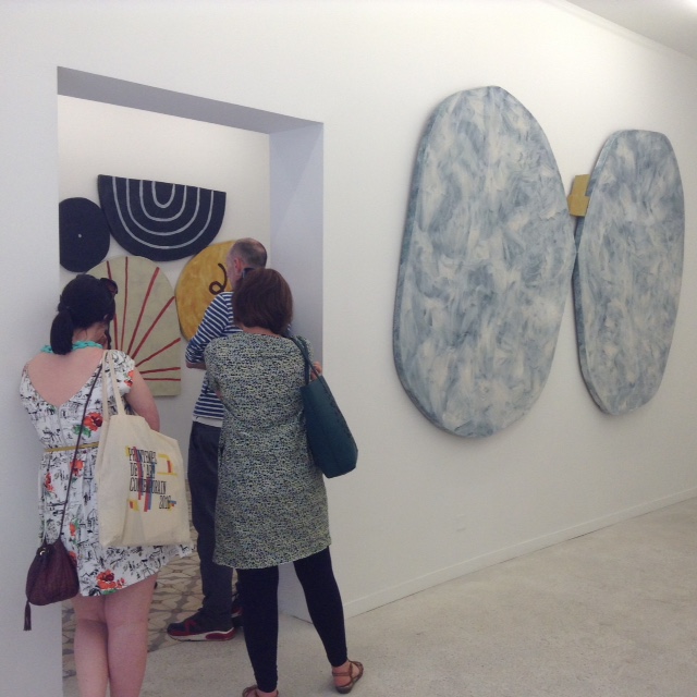 Commercial galleries make up a smaller part of the art scene in Marseille. Commercial galleries we visited during PAC included Béa-ba which is co-run by Beatrice Le Tirilly and Barbara Sartre and which staged a solo exhibition by Bernard Pages, En Regard, of drawings and sculptures from 1969-2015. Galerie Polysémie had an interesting take on the type of artist on the roster, with the director François Vertadier only selecting ‘outsider’ artists. The current exhibition was by art teacher Georges Bru, of dreamlike figurative work on paper. A number of the galleries were run by businesses which were different takes on the gallery model. TOGU was an architectural practice with a gallery, which had a roster of artists to propose to their architectural clients. Mécènes du Sud was working with Hotel Deux Pierres Deux Corps, hosting the last intake of a group of five young artists, through a residency in their hotel for a programme called Vacances Blues. The exhibition at the gallery included the work of Clémence Marin, with her videowork of a worker attempting the thankless task of sweeping a dance floor full of balloons to the side.