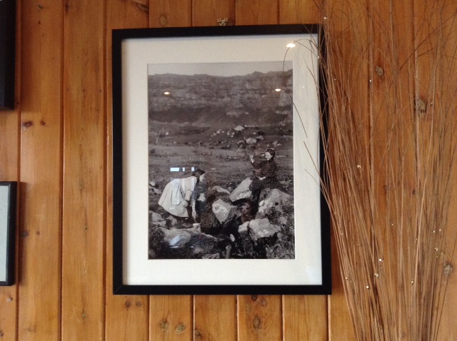 Framed MEM Donaldson photograph of children at St Columba’s Well, Eigg, exhibited at Galmisdale Bay Café and Bar, Eigg