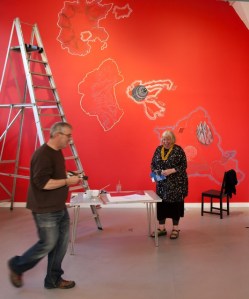This catalogue essay (full text here) accompanied Sam Ainsley’s first solo exhibition in thirty years, at An Tobar Gallery, Isle of Mull (16 September – 25 November 2017). The catalogue is designed by Graphical House. The essay focuses on three new works that Ainsley made for the exhibition, and through them, appraising the on-going themes of her work, namely the metaphor; and the relationship of the body to landscape and architecture. The translation of ‘An Tobar’ is the well. I contextualise her work through drawing upon the well of words of women writers that she consistently revisits as inspiration for her work. Furthermore, from an early interview I made with Ainsley, she re-called the impact science fiction written by women had on her. I investigate this in the essay, drawing connection between how Ainsley often in the displaying of her work in grid form or series, juxtaposes different ‘worlds’ together – a science fiction device. Ainsley refers back in her work to ‘The Map of Tendre’, a 17th century allegorical cartography linking geography to the body and emotions. Using this device, I created small text ‘islands’ throughout the body of the essay, based on some of the map’s locations. Given the site-specific island location of Ainsley’s exhibition her third work, a wall painting of imaginary and real islands, the essay also brings in references to the ways in which other Scottish islands have been either realistically or fictionally represented. Examples include St Kilda (Powell and Pressburger) and Shetland (Jenny Gilbertson). The essay begins with a manifesto including all of the titles of a grid of 36 new drawings/ collages that Ainsley made for the show. I am very grateful to Sam Ainsley and to Mike Darling (curator, An Tobar) for the invitation to write about her work.