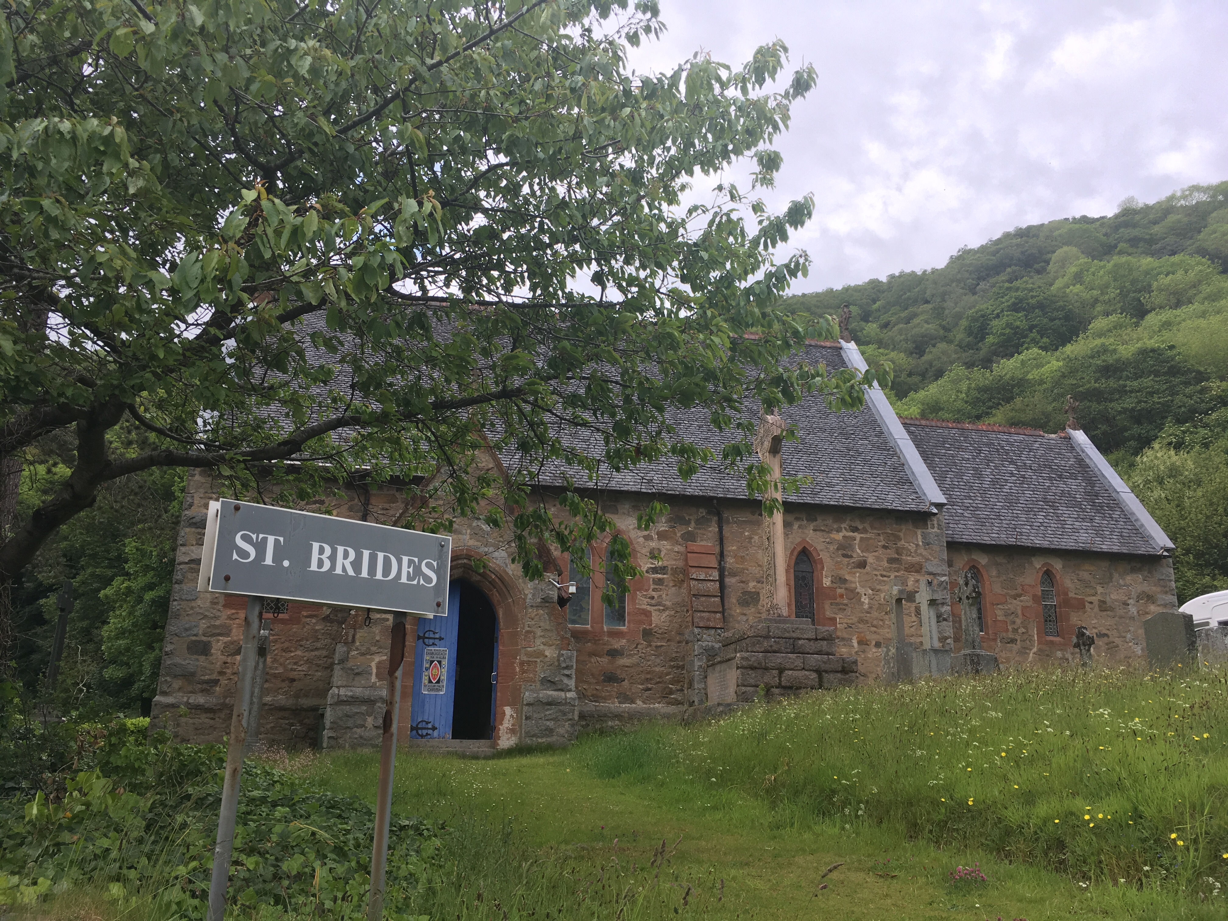 ‘Just about a mile short of North Ballachulish ferry, you pass at the foot of the craggy hillside the beautiful little church of S. Bride… I have been to the Three Hours’ Service on a wet Good Friday at S. Bride’s, and it has been a lesson to see the reverent intentness of a goodly congregation of Highlanders, mostly men, nearly all of whom were present throughout the devotion. (P. 271)