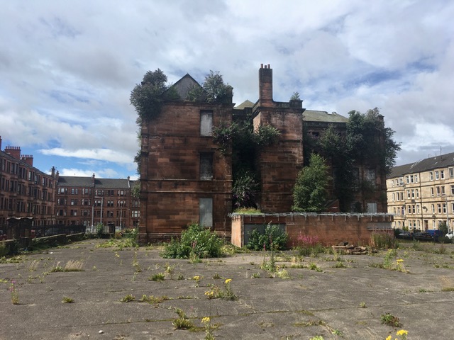 The first thing I noticed on returning to Glasgow’s east end, after four months away for lockdown, was the extent to which nature had taken over the streets and a number of the buildings. High weeds were growing profusely along curbs and pavements. The old derelict meat market’s security gates on Bellgrove Street had been prised open, to reveal an abundance of greenery within.