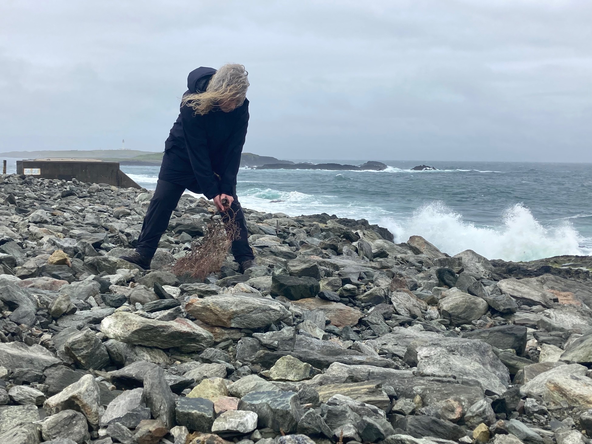The components required for renewable energy have their own finite, often short, life cycles. Limpet 500 was Europe’s first experimental wave chamber and the world’s first commercial wave power device, connecting to the UK national grid. It was designed by Wavegen and Queens University Belfast. Nine years after its decommissioning, the remaining concrete structure could be viewed as contemporary archaeology. On the Autumn equinox 2021, at age 50, I cleaned in front of Limpet 500, using heather from the Mull of Oa.