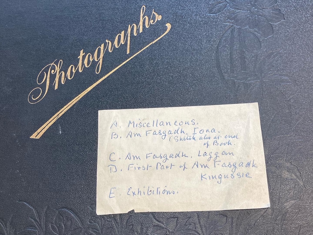 Cover of photograph album, with IF Grant’s handwritten index Photo: Jenny Brownrigg (2022)