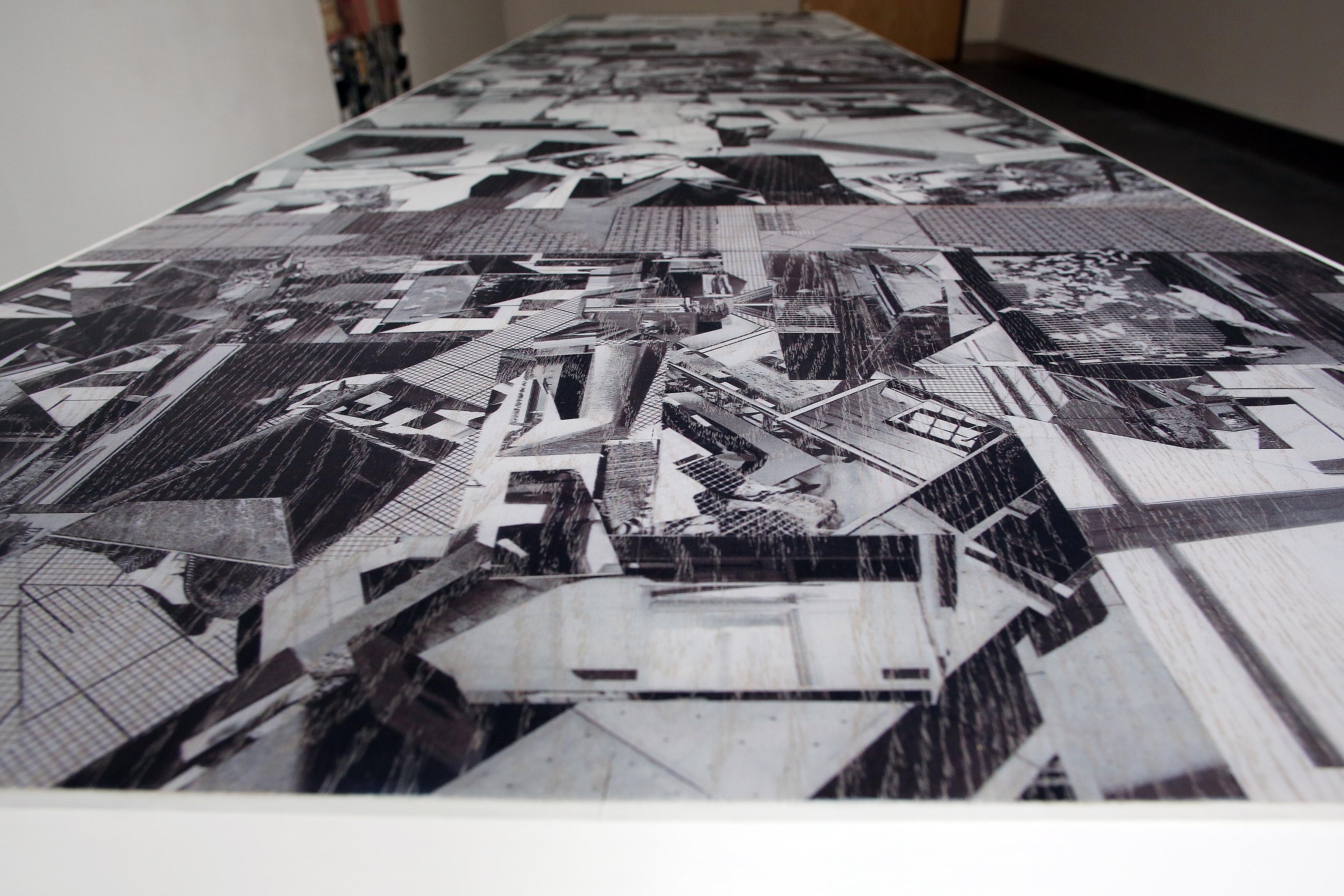 ‘Table’ (2014) collage, steel legs, varnished oak, Briggs & Cole, as part of ‘Temperance 3/5’. Photo: Janet Wilson