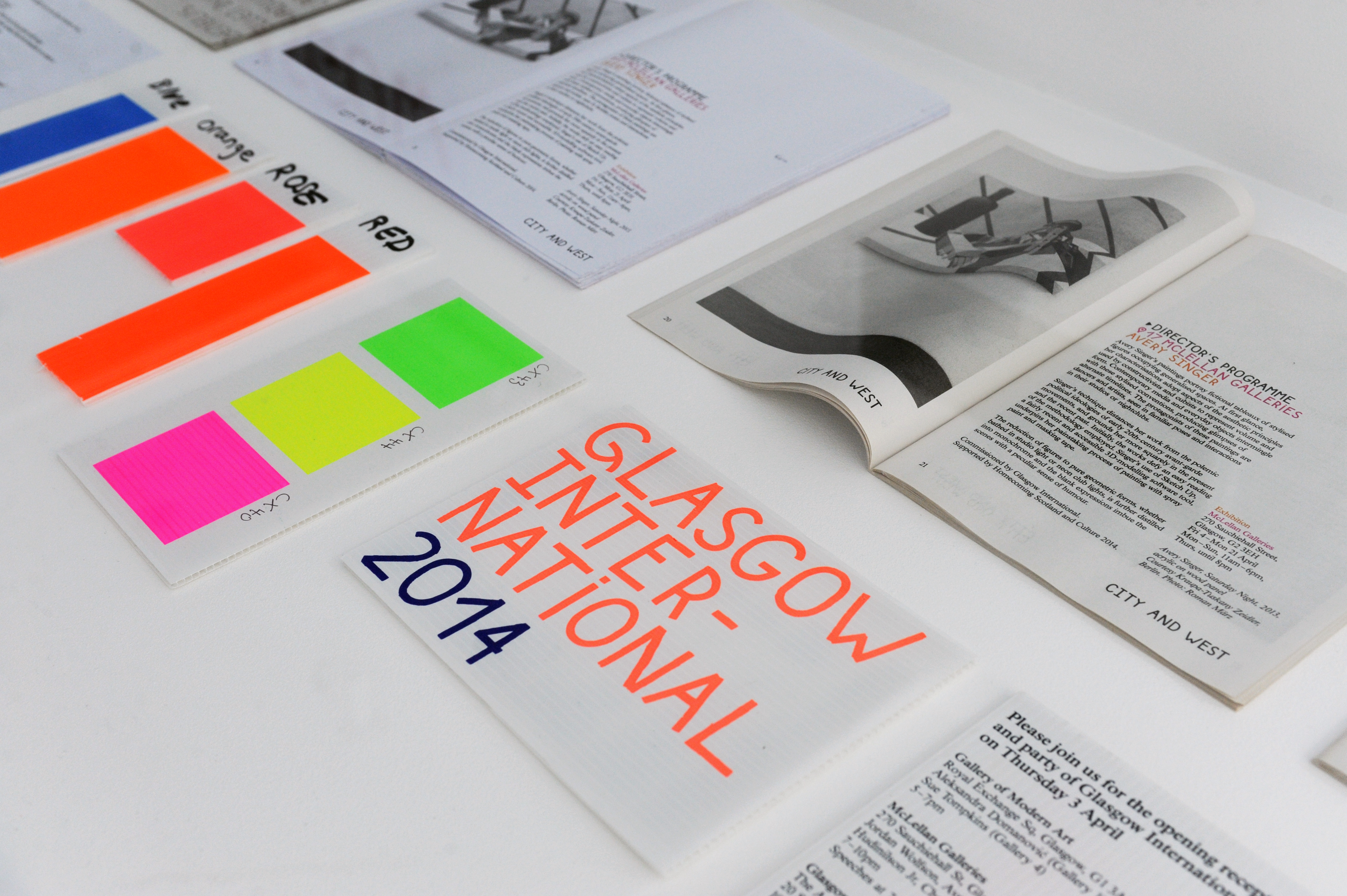 This exhibition with London-based design studio Kellenberger–White showcased the identity they developed for Glasgow International Festival of Visual Art in 2014. Kellenberger-White have been nominated by Design Museum in Graphics Section for Design of the Year 2015 for this design identity. Commissioned by Sarah McCrory, Director of GI, to design the identity for the Festival’s 2014 edition, they created a highly characterful typeface that captures the quickness and scale of large hand-painted lettering used on warehouses, docks and ships throughout Glasgow’s industrial waterfront. The hand-painted digitised font maximised inexpensive materials.