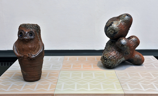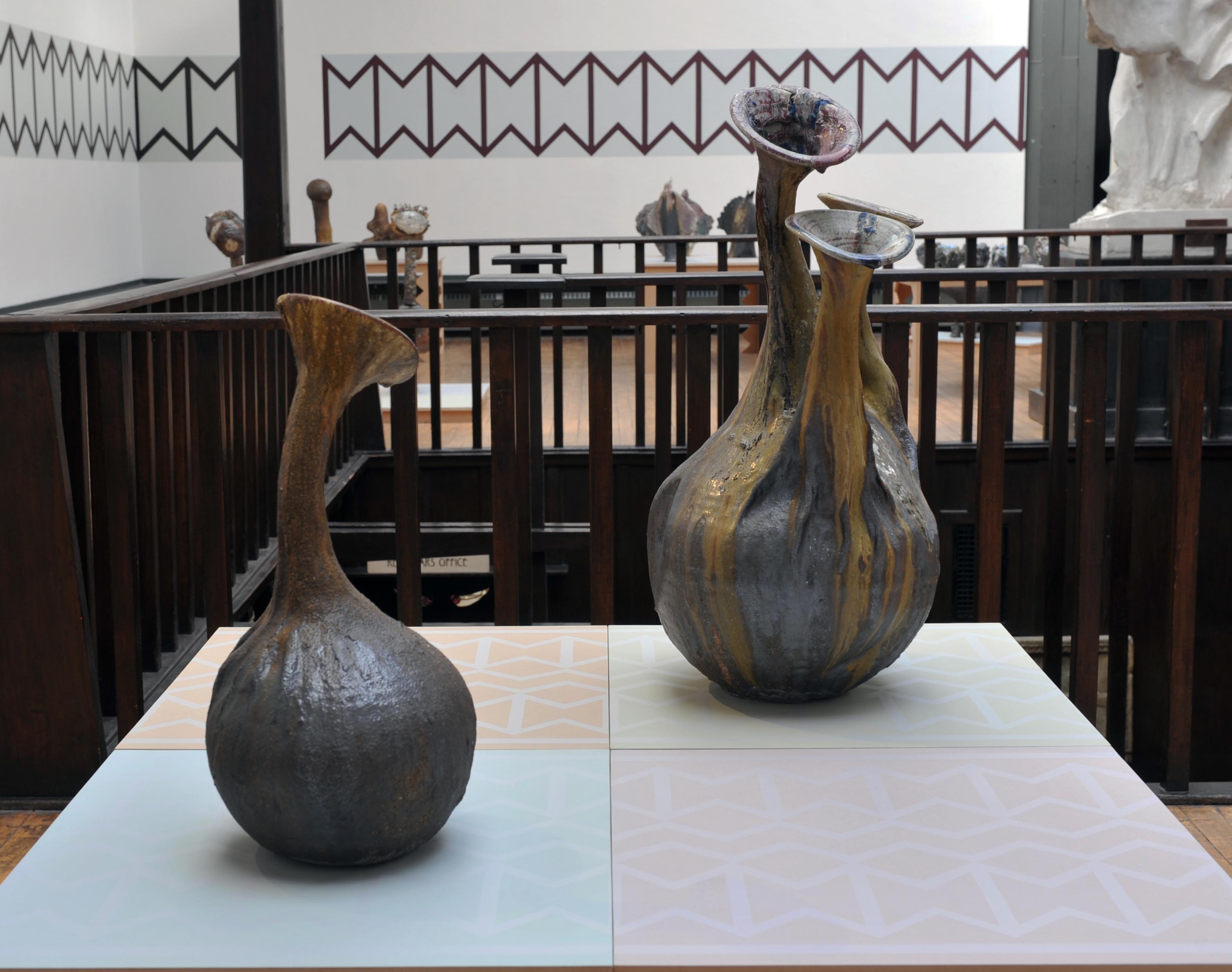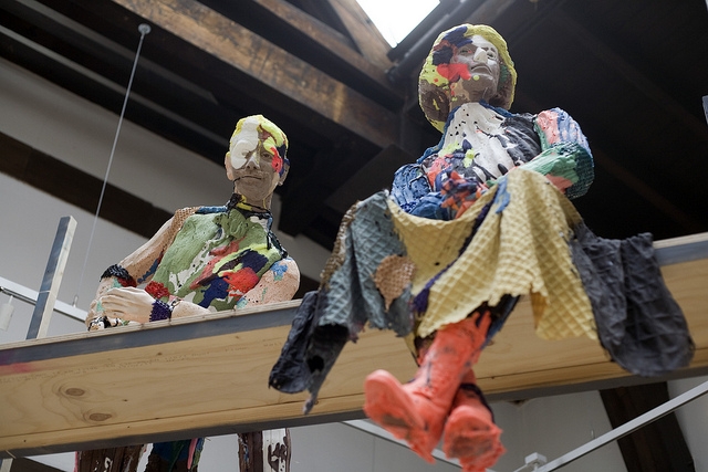 ‘The Immortals’, Folkert de Jong, (NL), Mackintosh Museum, GSA. Supported by Glasgow International Festival of Visual Art and the Mondriaan Fund. De Jong made a new installation of figurative sculptures for the Mackintosh Museum, inspired by the figures of Charles Rennie Mackintosh and his wife Margaret MacDonald Mackintosh. The exhibition title ‘The Immortals’ refers to the name they gave to their peer group that included Herbert McNair and Margaret’s sister Frances.